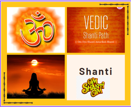 A Shanti mantra is a prayer or chant for peace, often recited before and after Hindu religious rituals or ceremonies. The word 'Shanti' comes from Sanskrit which means peaceShanti is repeated thrice since it is chanted for peace in the body, mind and spirit. It is also chanted thrice to make the past, present and future peaceful. When Shanti is chanted first time, it purifies the body and relieves it from the sufferings, diseases and discomforts. The body is thus refreshed.